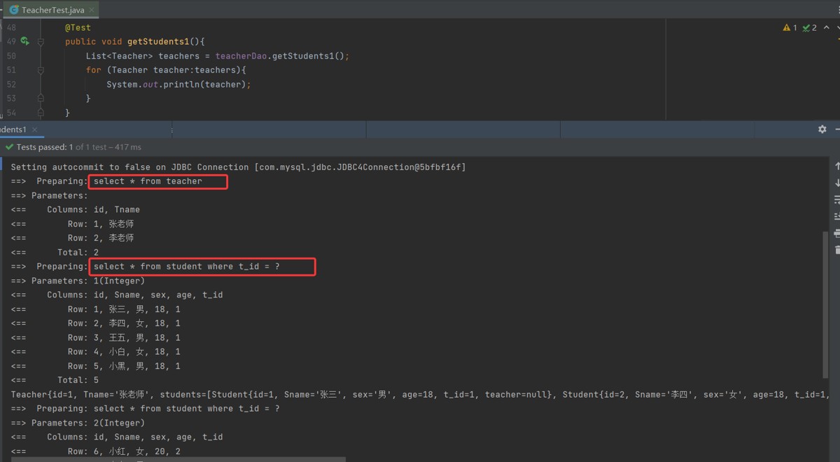<select id="findStudentTeacher1" resultMap="studentTeacher1">