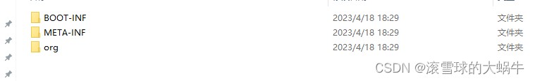 BOOT-INF/,META-INF/,org/之间均有空格,自己敲命令时别写错了。