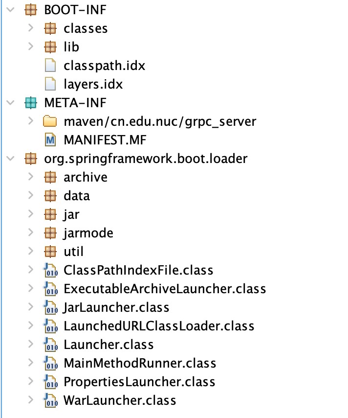 这种方式打成jar包的结构如下: