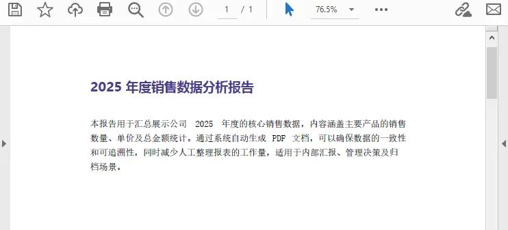 "通过系统自动生成 PDF 文档,可以确保数据的一致性和可追溯性," +