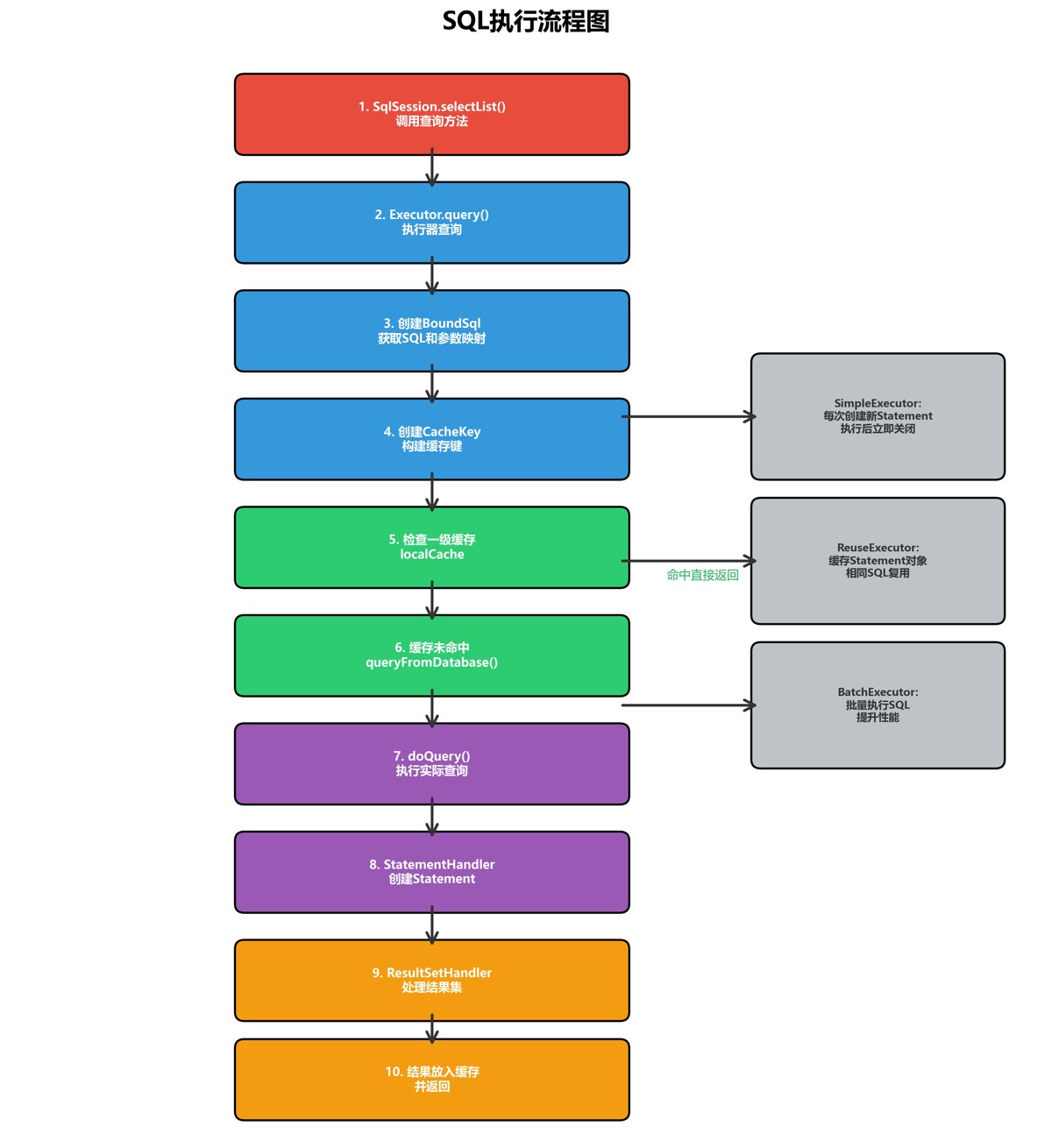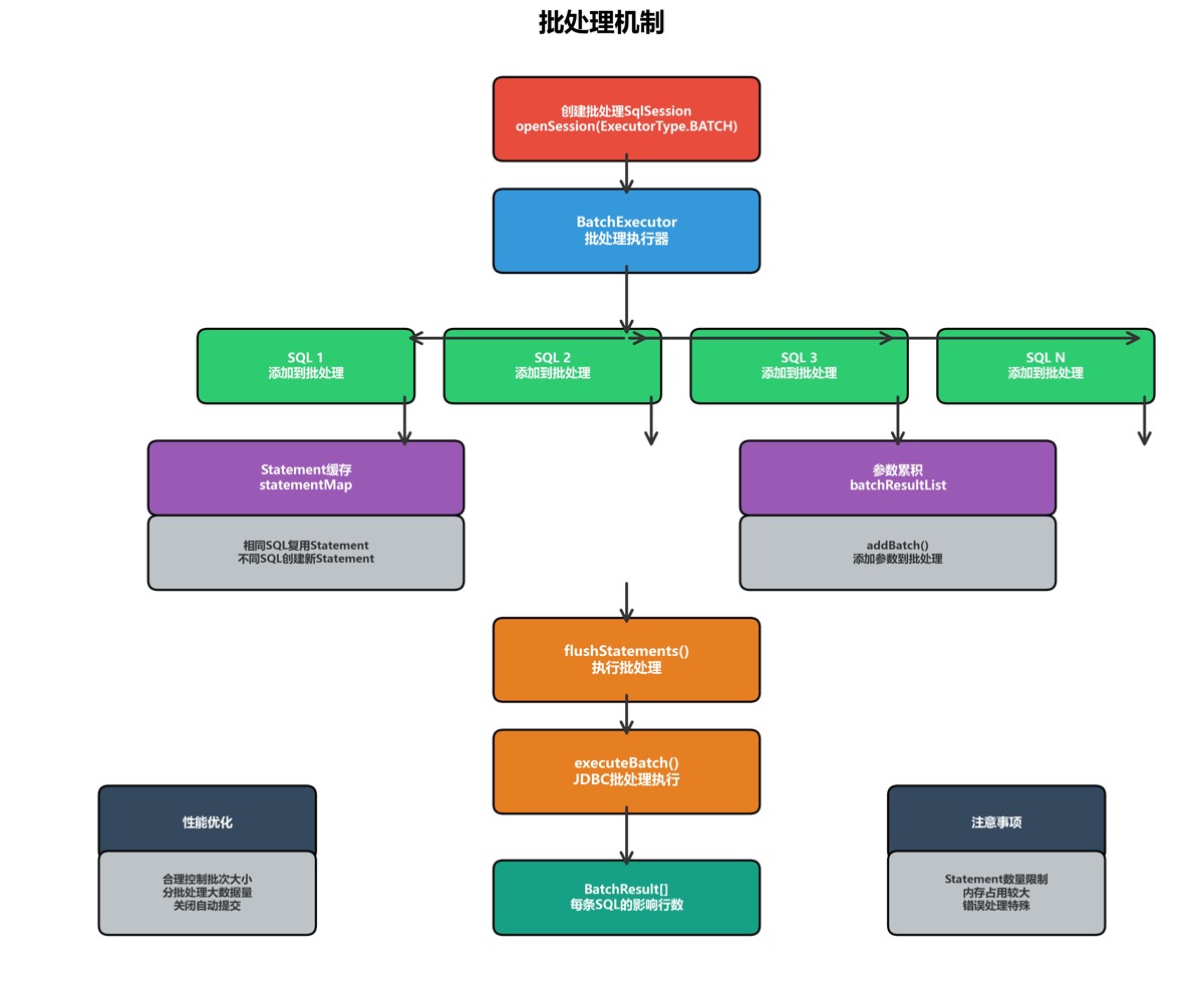 MyBatis的SQL执行模块是整个框架的核心执行引擎,通过精心设计的Executor体系,实现了高效的SQL执行、灵活的缓存管理、可靠的事务控制和强大的批处理能力。