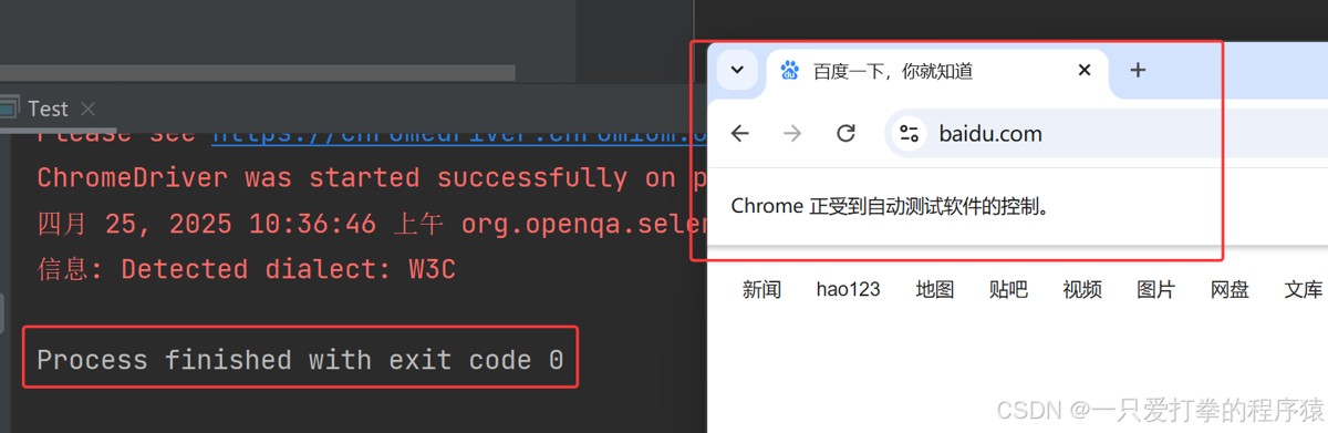 }运行代码后自动跳出百度网页则代表成功,"---remote-allow-origins=*" 为允许所有版本。