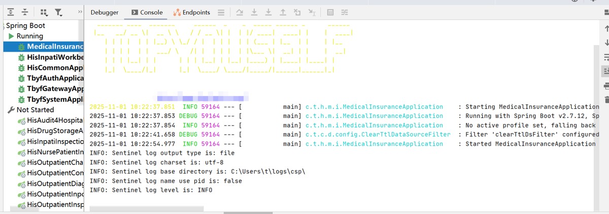 2025-11-01 10:03:21.063 DEBUG 30696 --- [ main] c.t.h.m.i.MedicalInsuranceApplication : Running with Spring Boot v2.7.12, Spring v5.3.27
