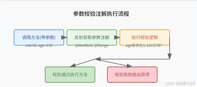 getAnnotations()一次性获取所有注解,避免多次反射调用;- 异常友好提示:校验或日志失败时,异常信息要明确(如 "年龄必须在 1-120 岁之间" 而非 "参数错误")。