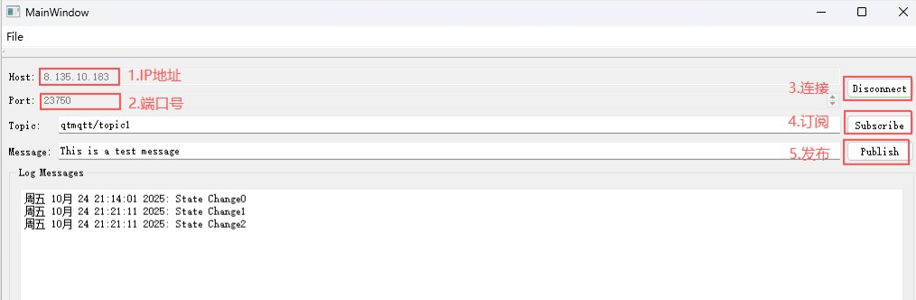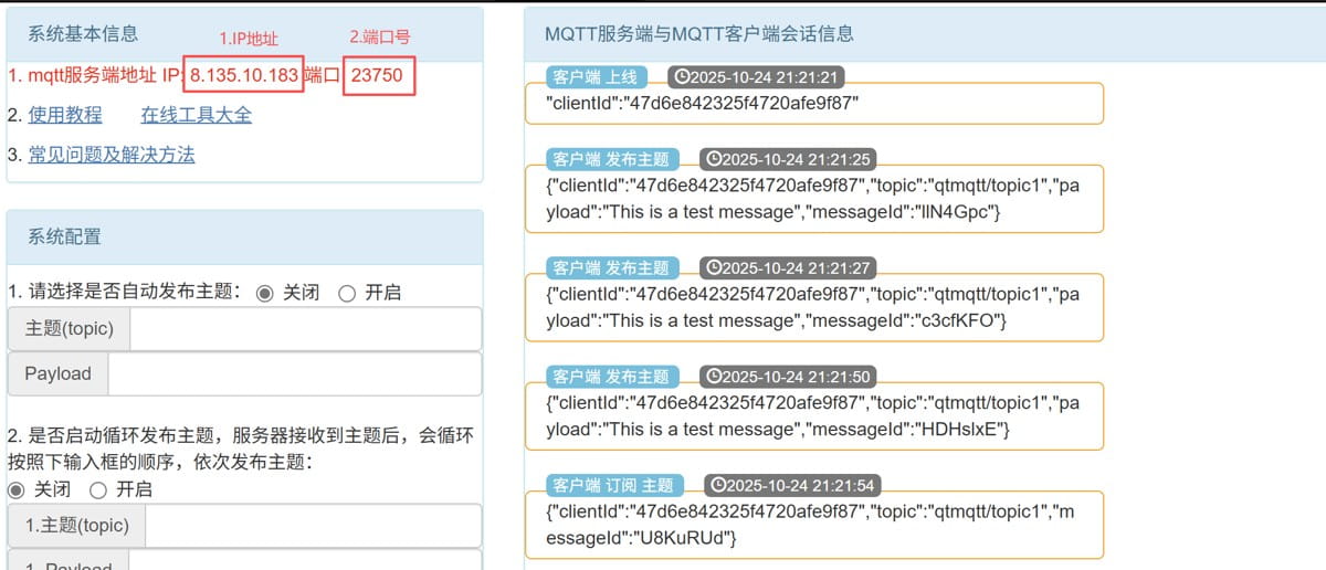 4.按照 2.1 的步骤4进行MQTT自带例子的测试