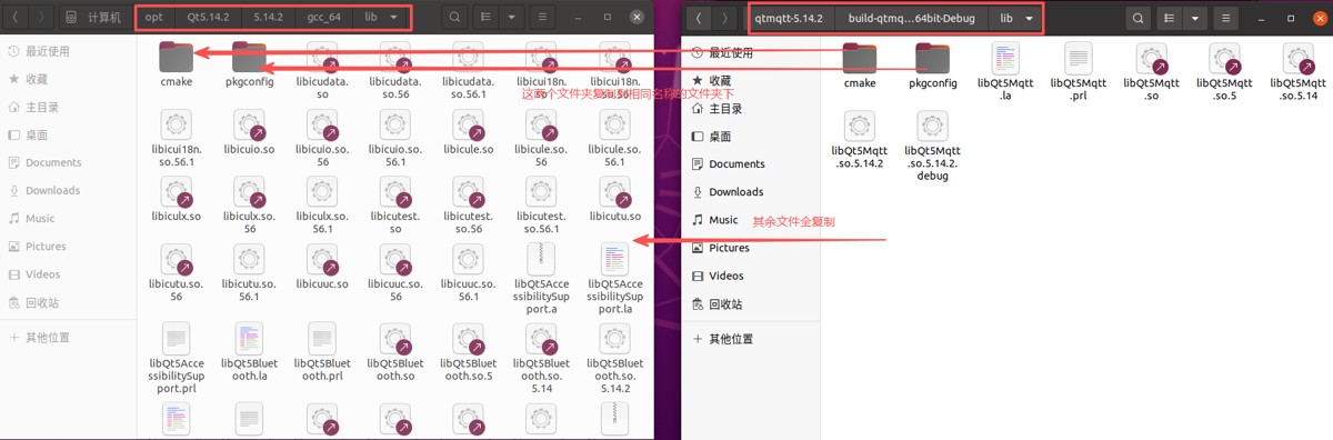 - 把include 文件夹下的QtMqtt文件夹复制到QT安装目录下的\gcc_64\include 文件夹,之前复制的.h文件不要删