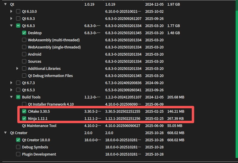 安装QT6的时候记得安装QT6自带的cmake,Linux系统自带的cmake可能版本太低,导致编译不成功。