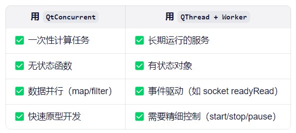以下是QtConcurrent和QThread+Worker的对比: