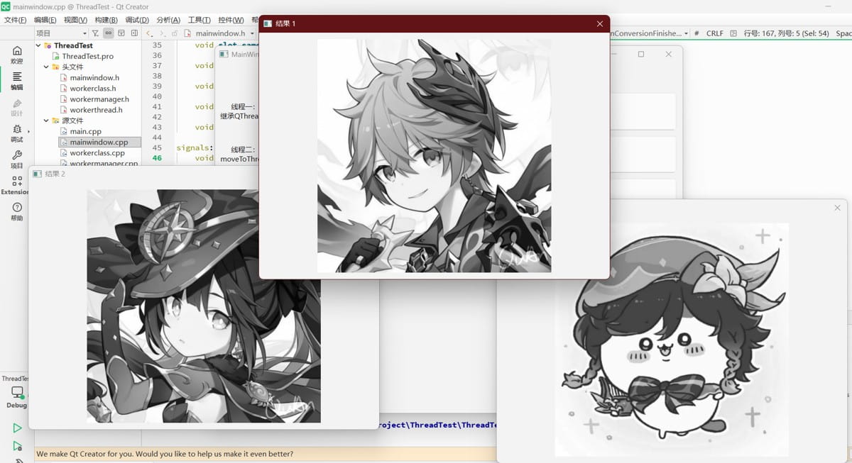 可以看到,QtConcurrent更适合用作一次性的计算任务,特别是简单一次性的并行任务。如果是需要长期运行的任务,如while循环获取,还是采用QThread+Worker比较好。