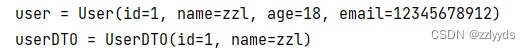 User user=new User(1L,"zzl",18,"12345678912");