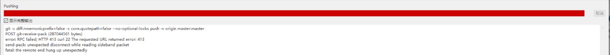 error: RPC failed; HTTP 413 curl 22 The requested URL returned error: 413 send-pack: unexpected disconnect while reading sideband packet fatal: the remote end hung up unexpectedly
