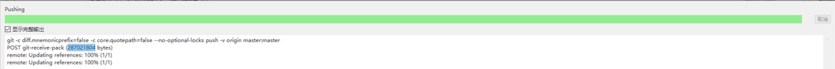 配置重载后,再次执行 Git push,推送包大小达 274MB,已成功,问题解决。