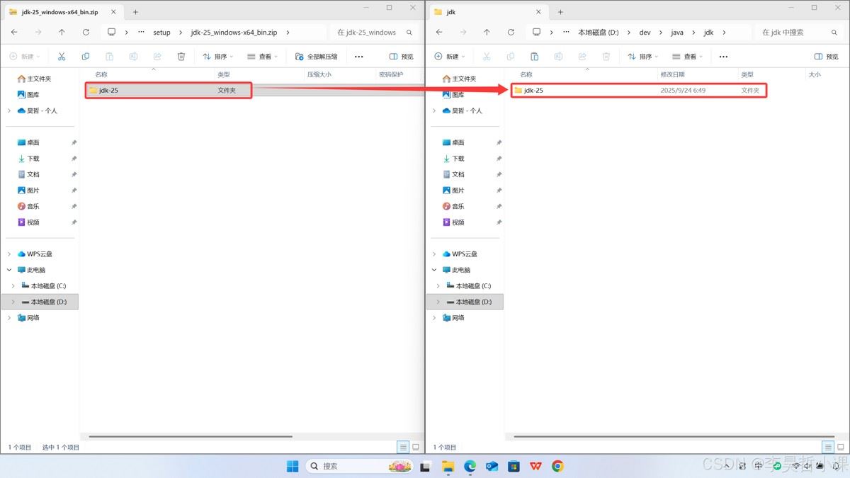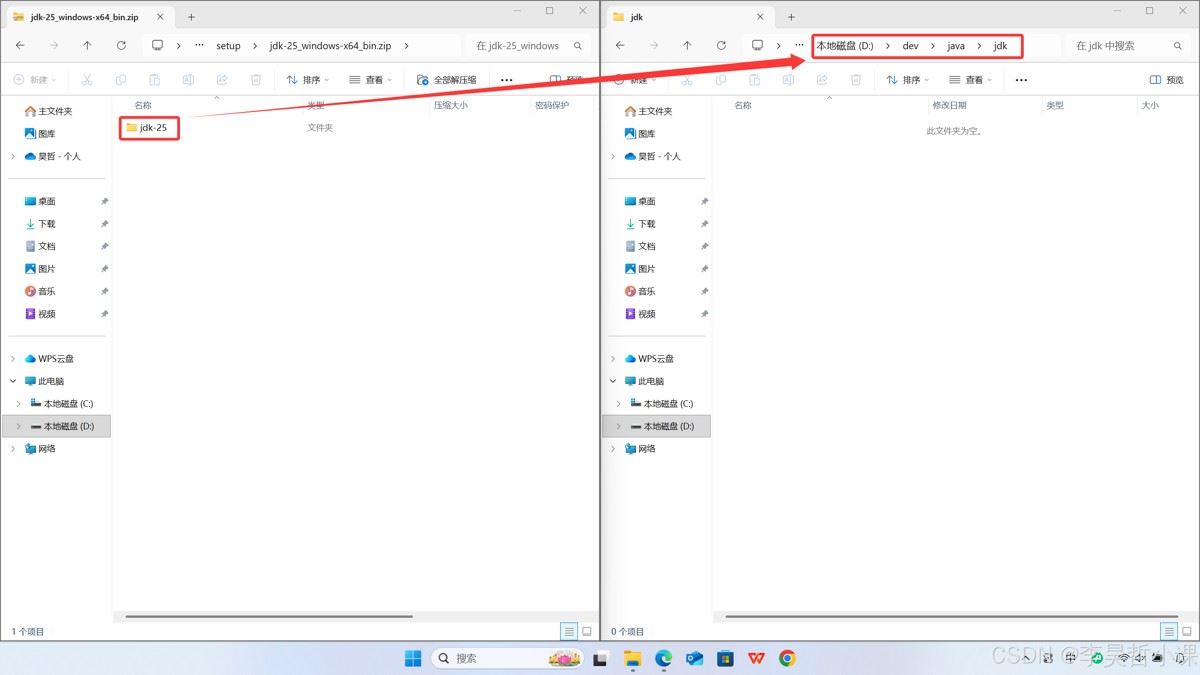 将下载的 jdk.zip 文件解压缩到 安装目录 d:\dev\java\jdk