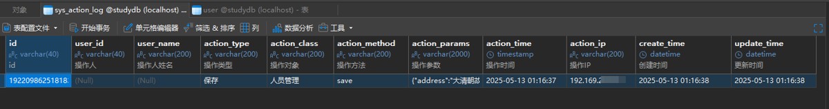 该切面类没有记录人员信息,具体根据实际项目来写入