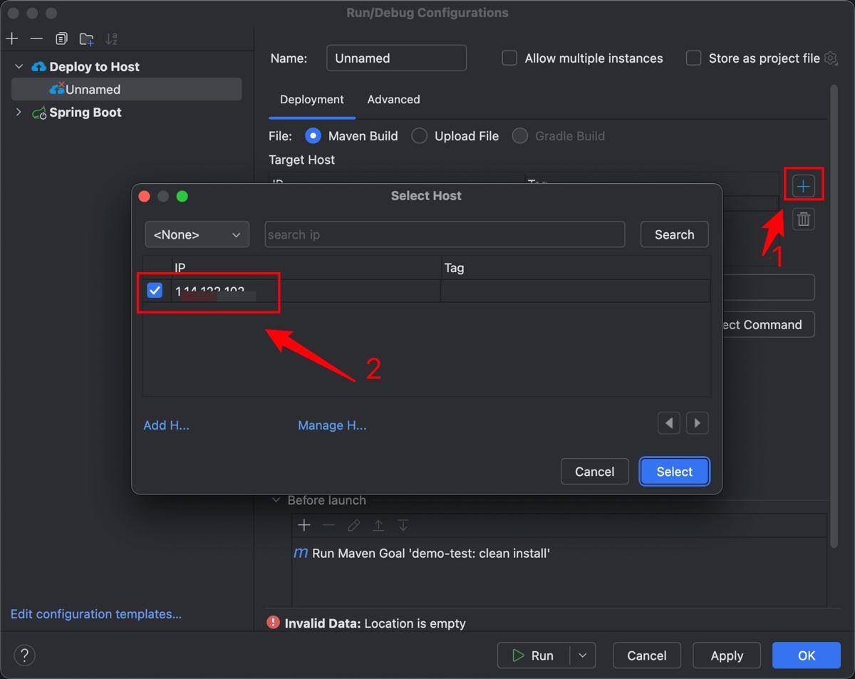 5. 指定Target Deploy Host 选择添加主机IP,勾选刚添加的服务器