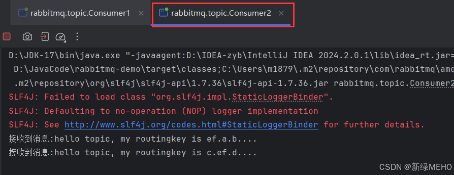 channel.basicPublish(Constants.TOPIC_EXCHANGE,"c.ef.d", null, msg_c.getBytes());//转发Q2