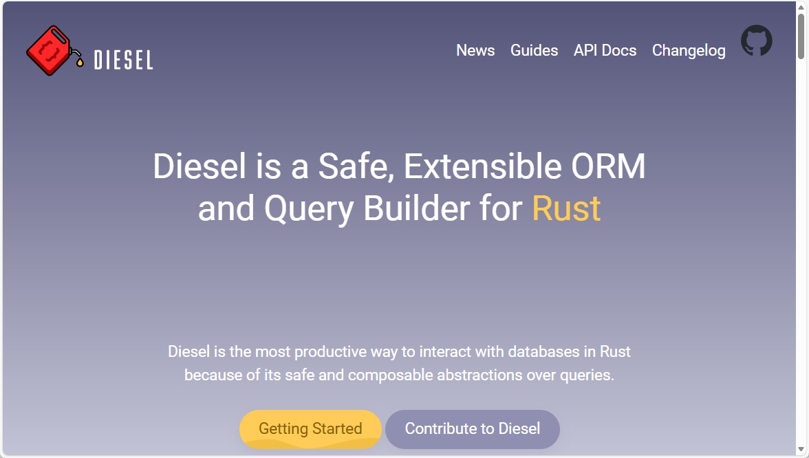 Diesel 是 Rust 中最成熟的 ORM 框架,主打 编译期 SQL 校验 和 强类型映射,非常安全,但使用成本较高。