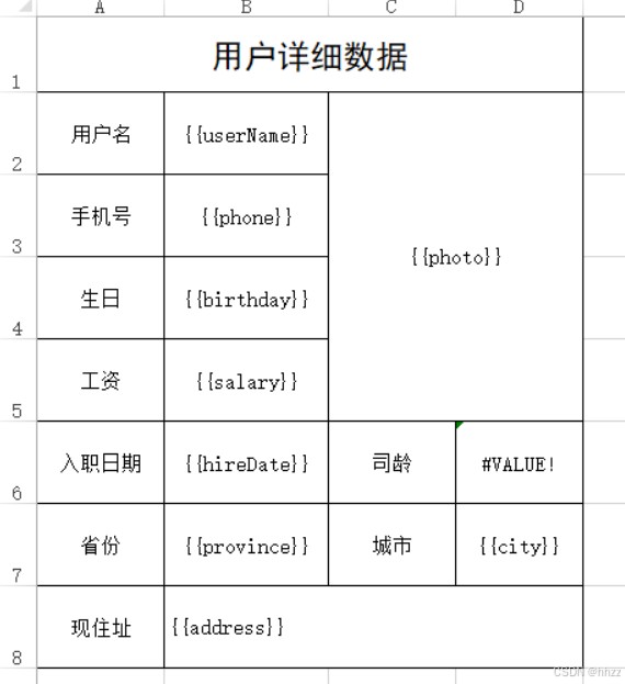 这个模板和我们做的userInfo2.xlsx模板一样,只是这个变量使用了{{}}包起来了