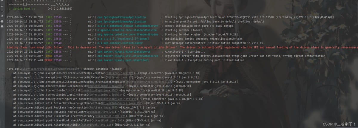 原因:java.sql SQLSyntaxErrorException:未知数据库“jiakao”