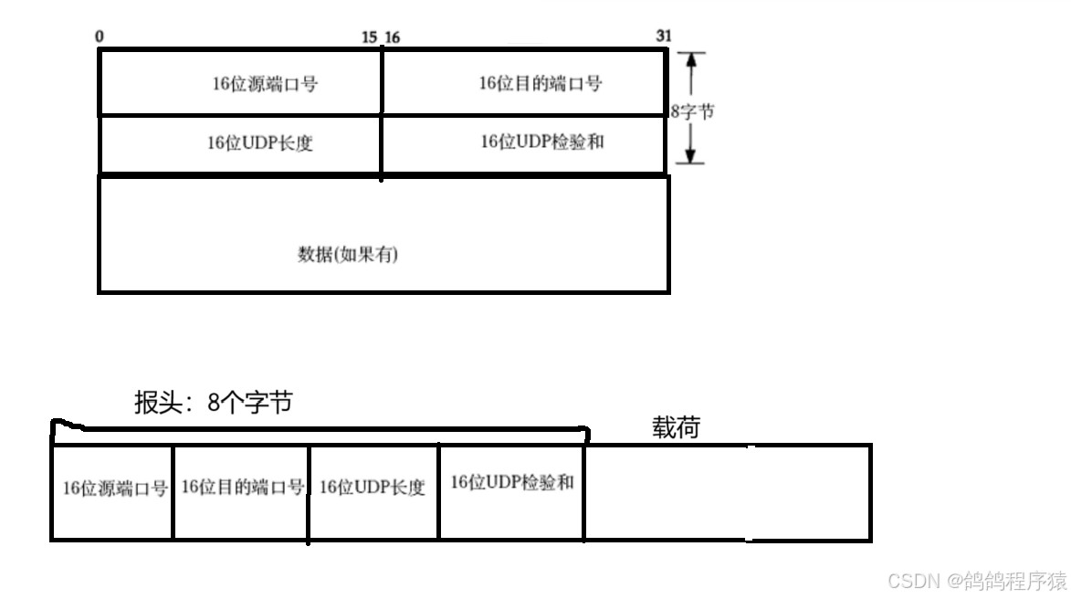 - 16位UDP校验和:如果校验和出错,就会直接丢弃;