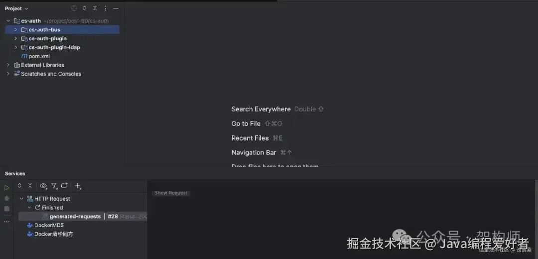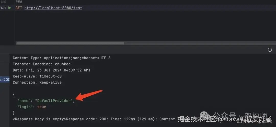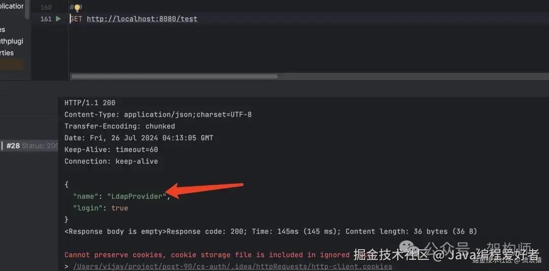 此时返回为默认实现,把cs-auth-plugin-ldap项目模拟的第三方包放到外部jar包加载目录,重新启动项目后发起请求