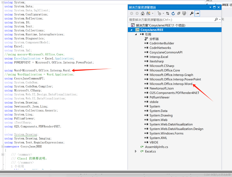 3、示例代码中 Word 表示 using Word=Microsoft.Office.Interop.Word; 的引用。
