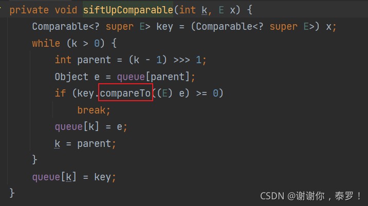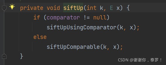 好像并没有什么异常,但是由于我 插入第二个元素时,i 不为0,所以要进行 siftUp 方法,我们转到它的定义