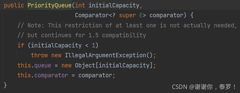 我们可以转到 PriorityQueue 的无参构造方法的定义看看
