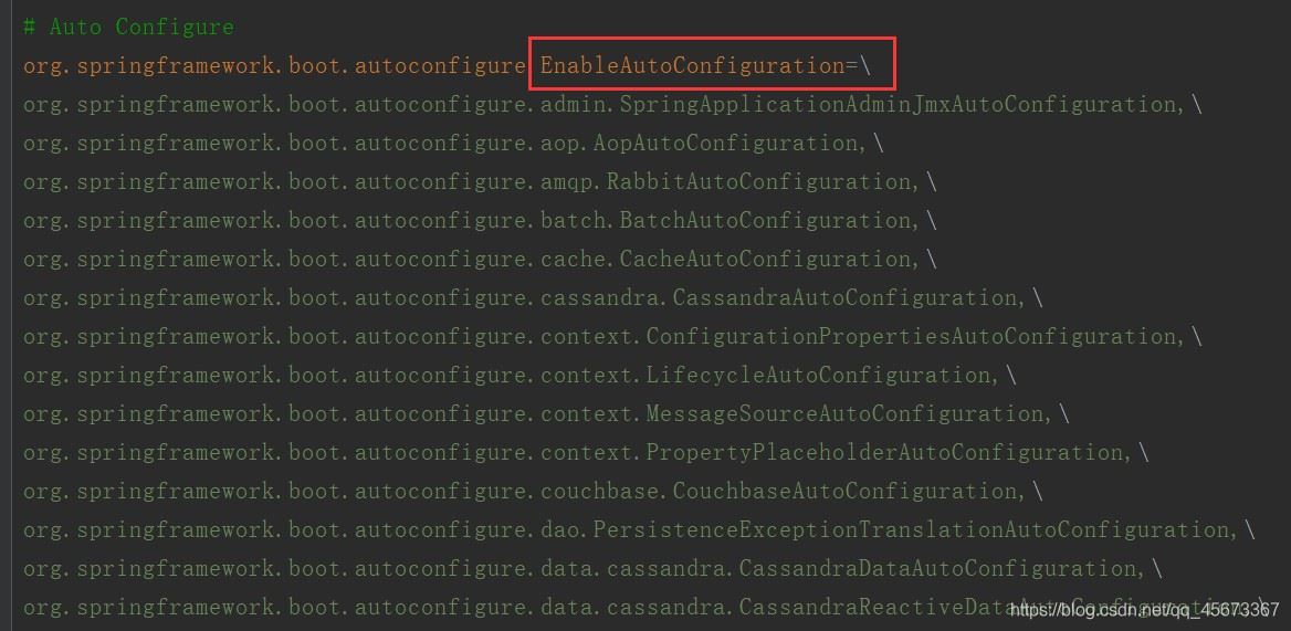 - loadFactoryNames方法会读取spring.factories中EnableAutoConfiguration.class类名对应的值