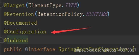 @SpringBootConfiguration源码是@Configuration:表示该类为主配置类,可用来装配bean