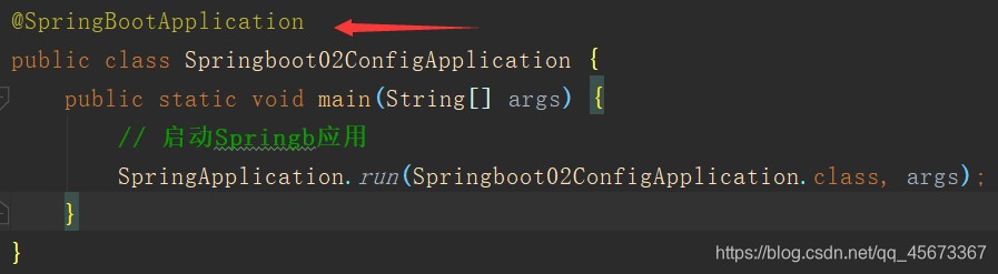 它是JavaConfig形式的基于Spring IOC容器的配置类使用的一种注解。SpringBoot本质上就是一个Spring应用,通过这个注解来加载IOC容器的配置。所以在启动类里面标注了@Configuration,意味着它也是一个IOC容器的配置类