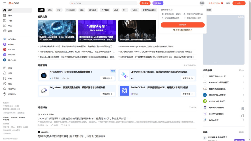 以CSDN首页为例,我们在网站上输入CSDN的首页地址后,点击回车就可以看到其首页。如下图所示: