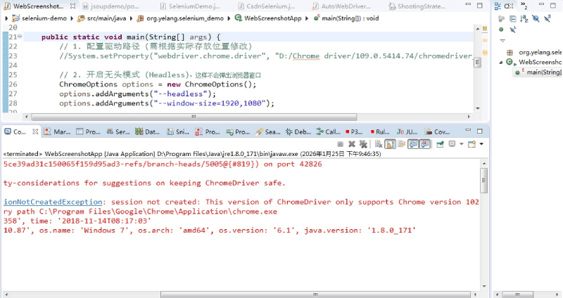 options.addArguments("--window-size=1920,1080");第三步是创建WebDriver,然后访问我们的具体页面,在访问页面的同时还要进行截图,并且保存到本地。核心代码如下: