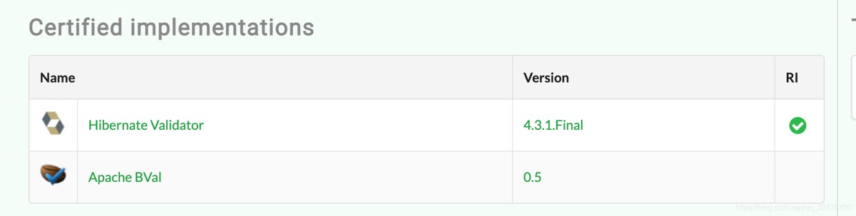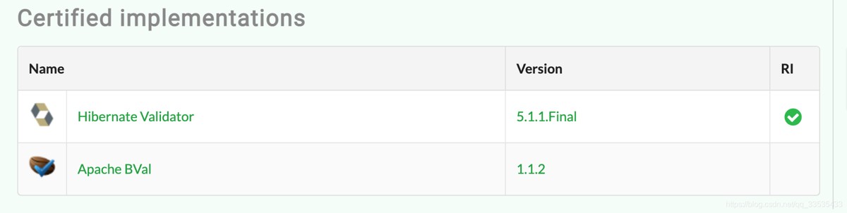 当下主流版本,也就是Java Bean Validation 2.0,它完成于2017年8月,在2019年8月发布,属于Java EE 8的一部分。它的官方参考实现只有唯一的Hibernate validator了: