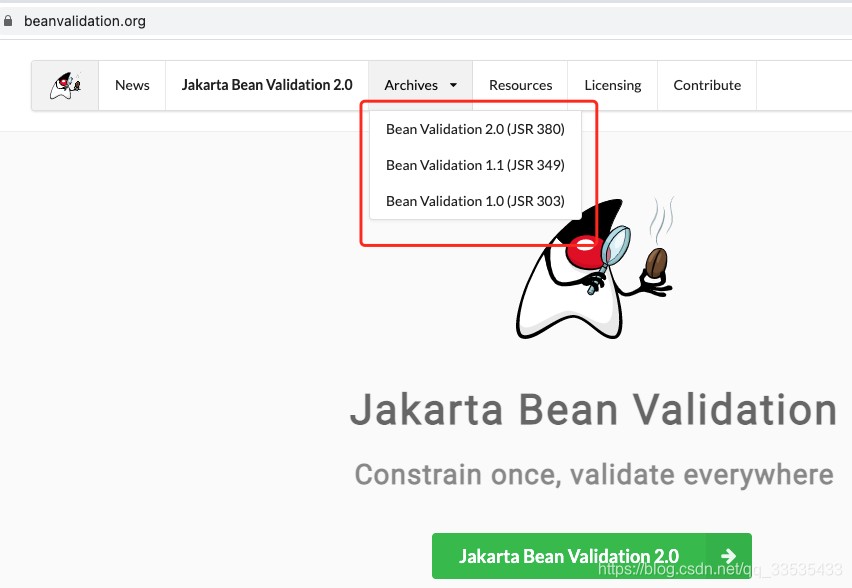 作为开山之作,它规定了Java数据校验的模型和API,这就是Java Bean Validation 1.0版本。