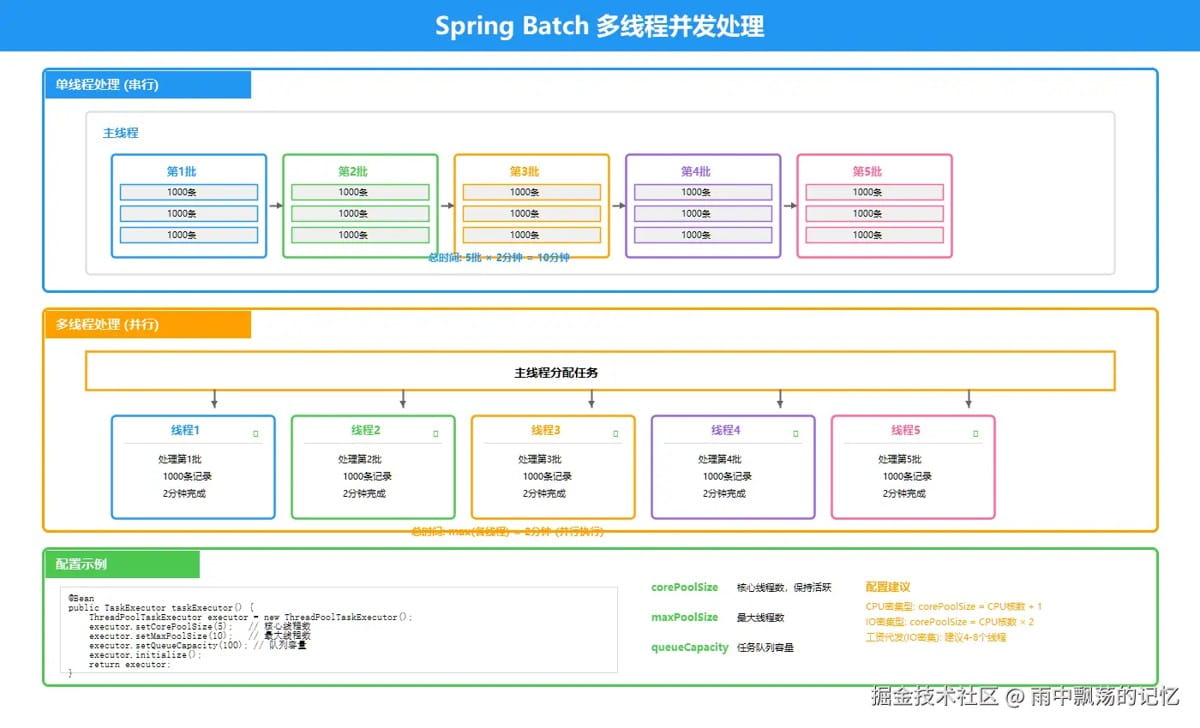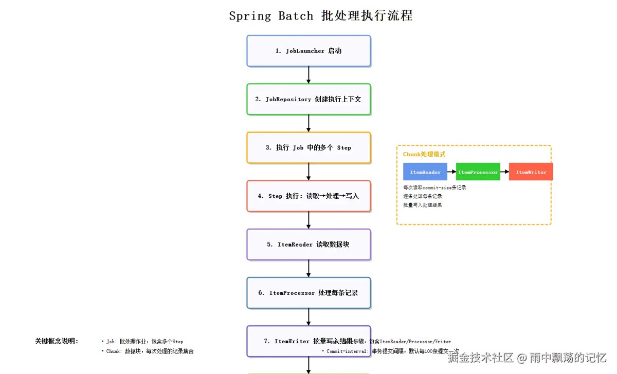 Spring Batch作为成熟的批处理框架,提供了完整的解决方案来处理大规模批量数据。