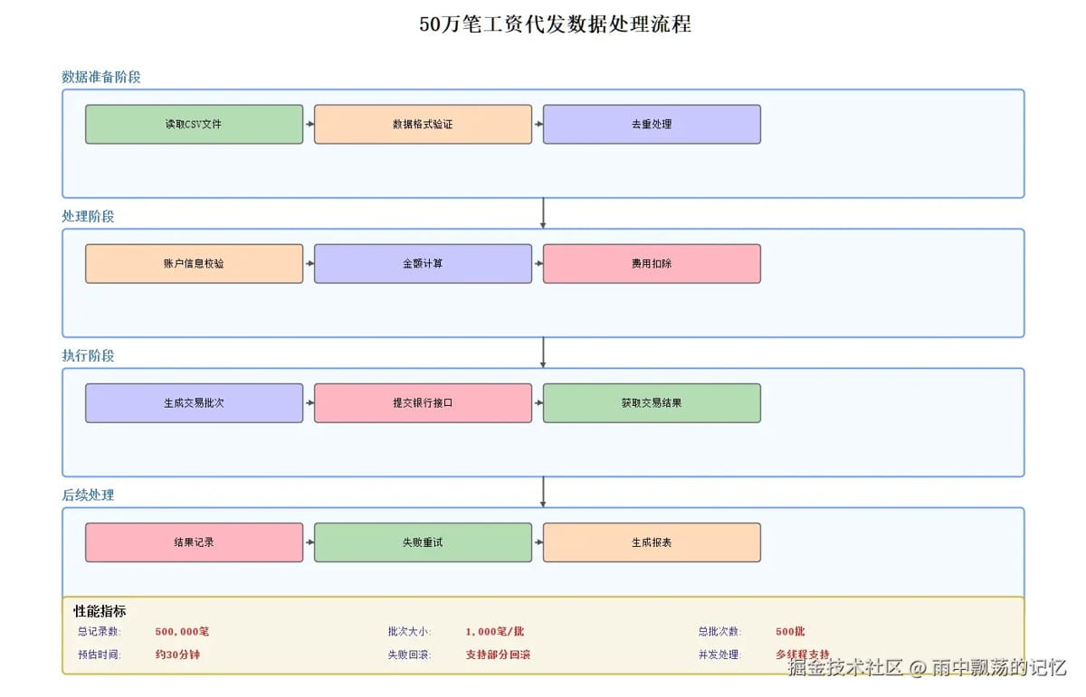本文将以"50万笔工资代发"为实际场景,详细介绍如何使用Spring Batch框架来处理大规模批量数据,并重点讲解当处理失败时,如何实现部分回滚机制,确保已成功处理的数据不会因为少量失败记录而全部回滚。