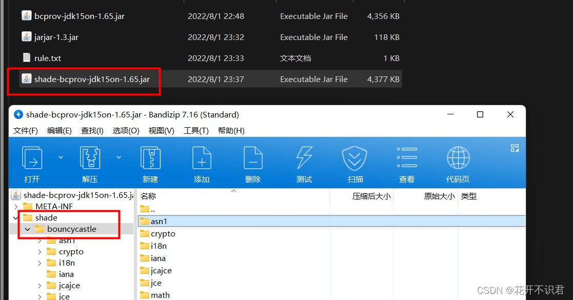 我们需要将 bcprov-jdk15on-1.65.jar 由原本的org.bouncycastle 替换为shade.bouncycastle