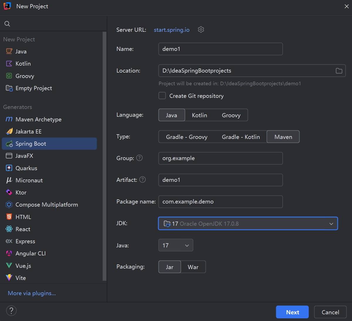 - Packaging:打包方式(选择 Jar,SpringBoot 推荐)