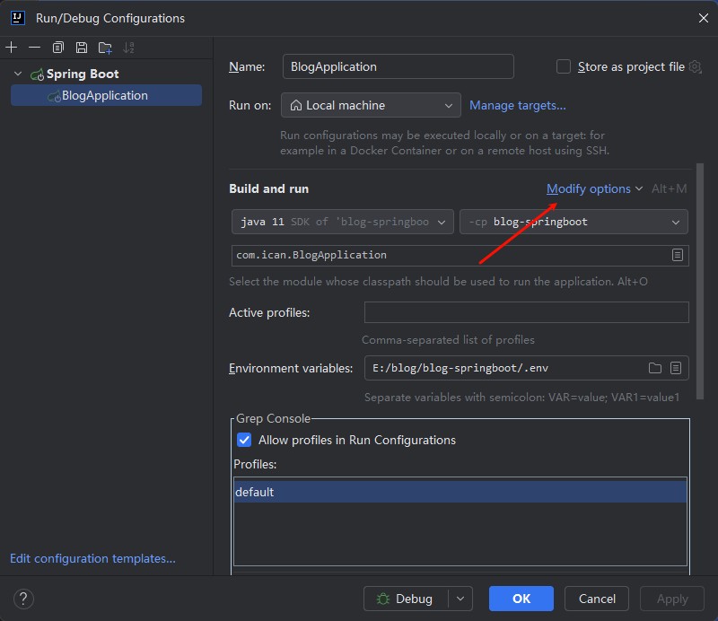 2. 打开Modify options