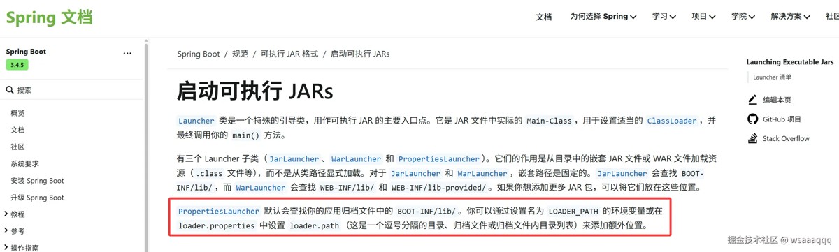 [....] java [....] -Dloader.path="lib-dir1,dir2" -jar xxx.jar [....] 或者 [....] java [....] -Dloader.path="lib-dir1,dir2" -cp "xxx.jar" org.springframework.boot.loader.PropertiesLauncher [....]