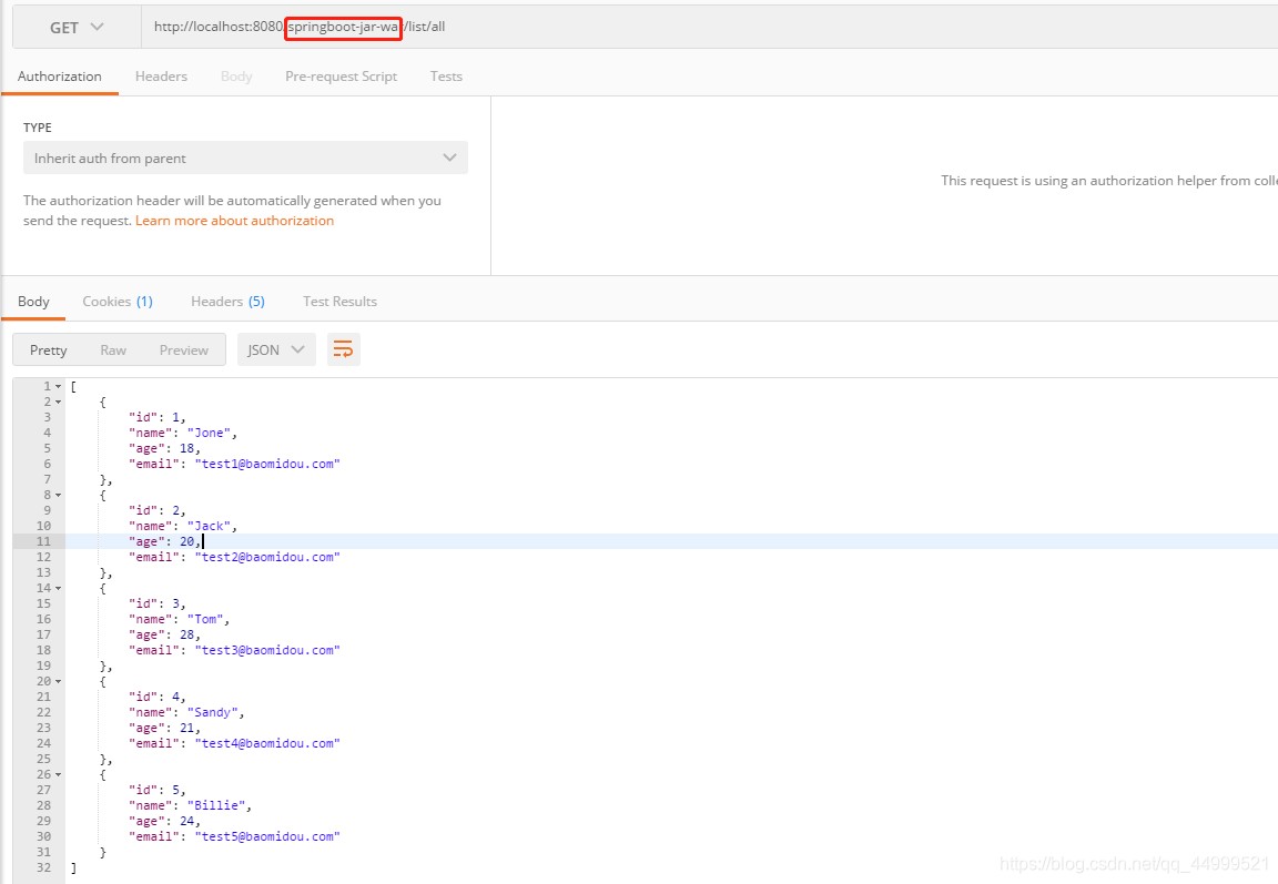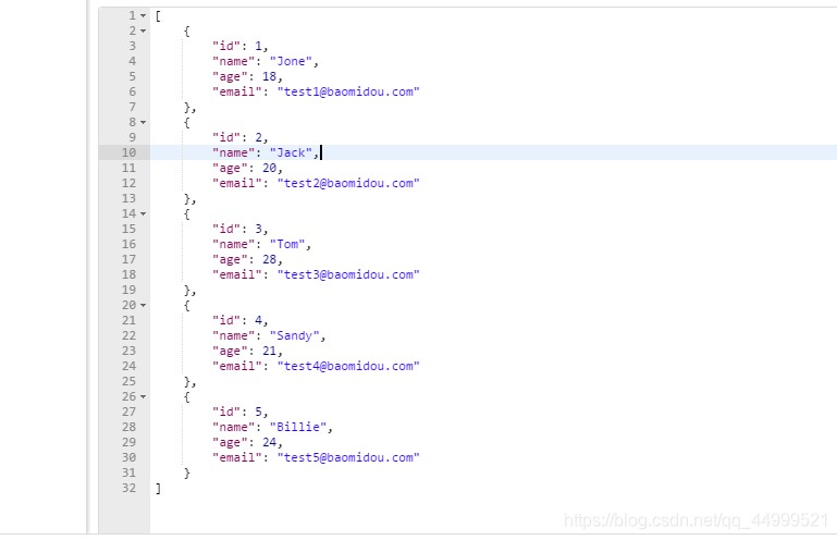 | 4 | Sandy | 21 | test4@baomidou.com |