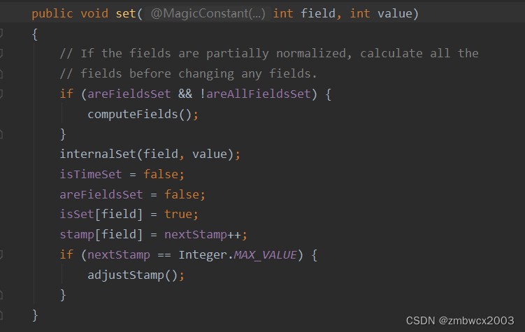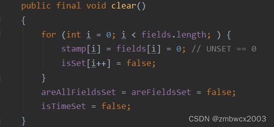 }可以看到,在该方法中,对cal对象执行了clear()方法与set()方法,我们查看clear方法是做什么的