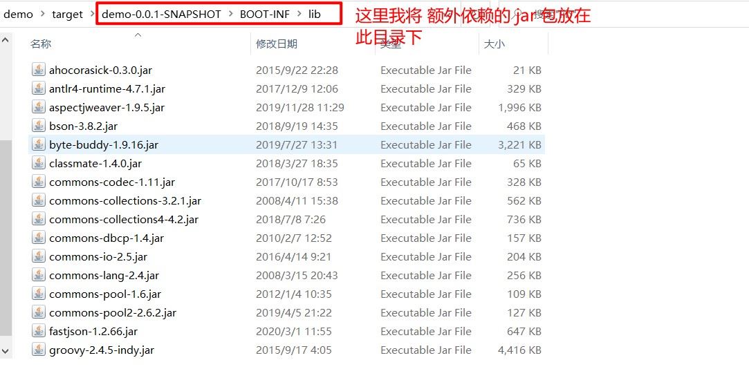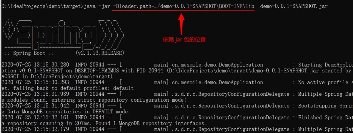 java -jar -Dloader.path=./demo-0.0.1-SNAPSHOT\BOOT-INF\lib demo-0.0.1-SNAPSHOT.jar