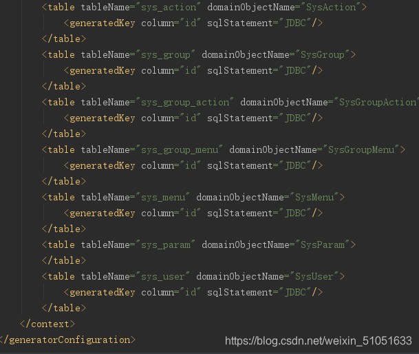 2.generatorConfig.xml 需要注意的是 pojo mapper.xml Dao 的路径还有就是表的字段