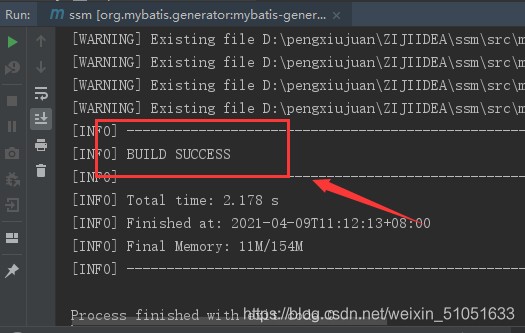 4.控制台出现 success 就是成功 然后需要的类就建好了