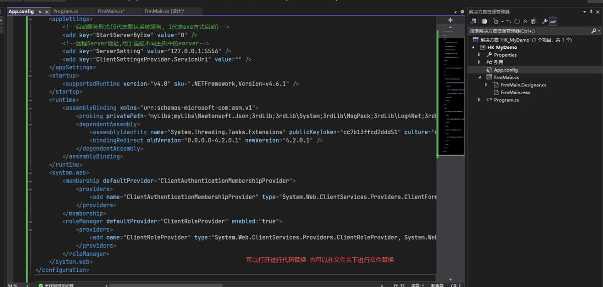 - 文件在新建一个C# WinForms 4.6.1版本 窗体程序的时候 也会自动生成出来 App.config的文件 替换掉或者将代码复制粘贴也可以