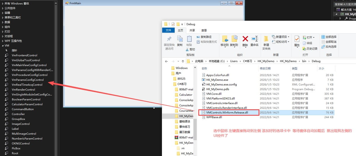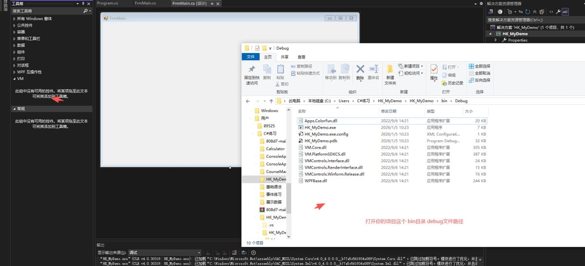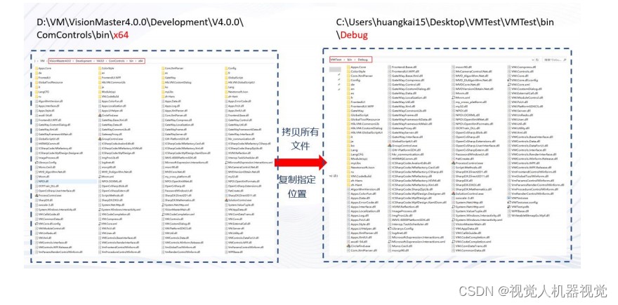 将VM安装目录下的文件VisionMaster4.0.0\Development\V4.0.0\ComControls\bin\x64”下整体拷贝到新建工程的 Debug下,注意如果引用的文件不是该路径下,则拷贝时候选择覆盖