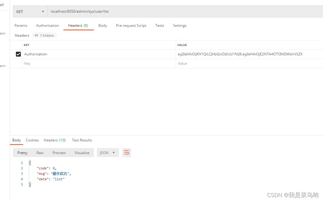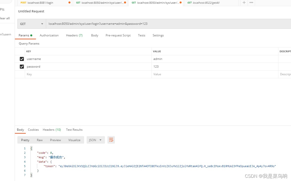 下面访问登陆接口,是可以访问的,并且返回的token令牌,我们可以拿着这个token去访问其他接口