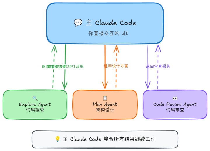 主 Claude Code (你) ├─ Explore Agent (代码库探索专家) ├─ Plan Agent (架构设计专家) ├─ Backend Architect Agent (后端架构师) ├─ Tech Blog Writer Agent (技术写作专家) ├─ Code Reviewer Agent (代码审查专家) └─ 你的自定义 Agent (...)